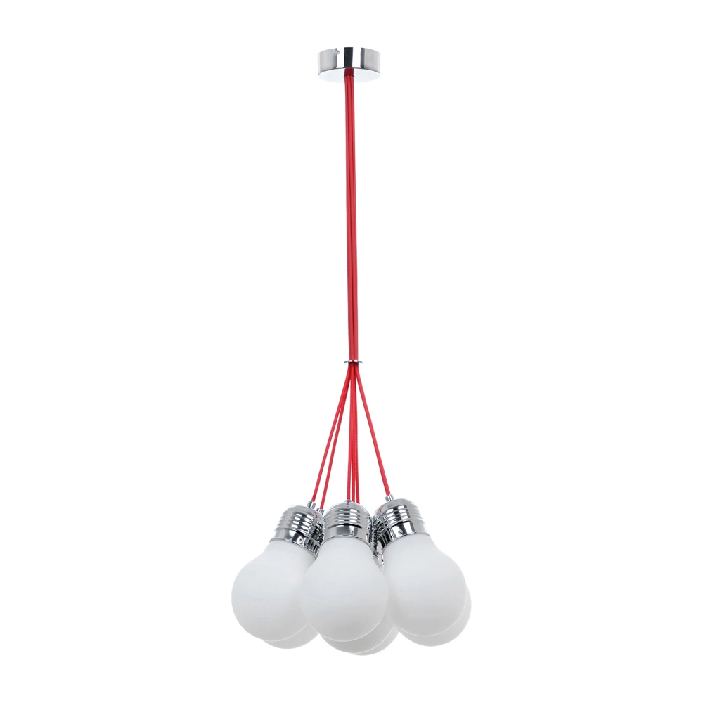 Lampa wisząca z żarówką 7xE27 maks. 60W chromowany metal/czerwony kabel z tkaniny/białe szkło 2810728
