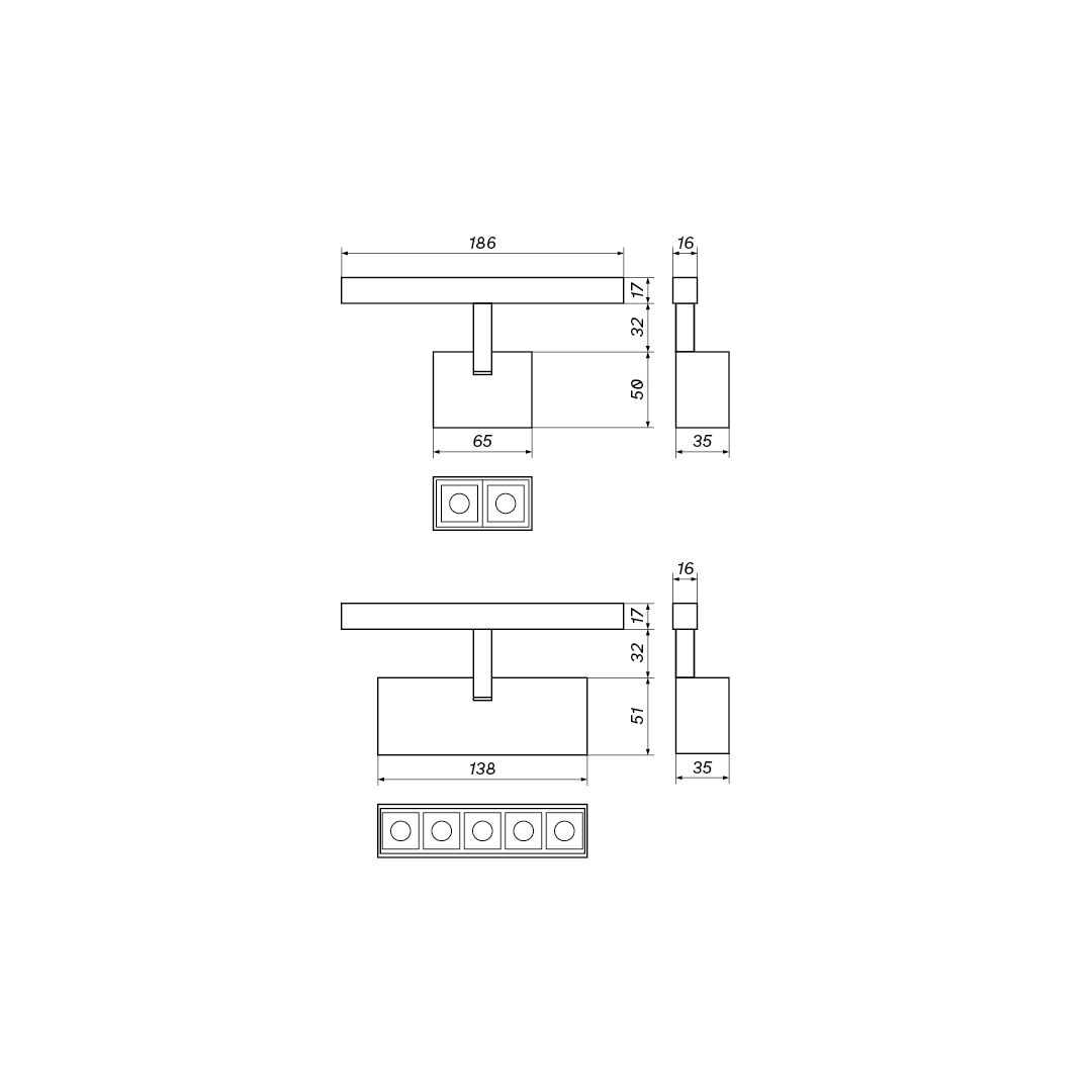 LOONARI reflektor na szynę 48V MultiLINE DOTS SPOT CUBE M