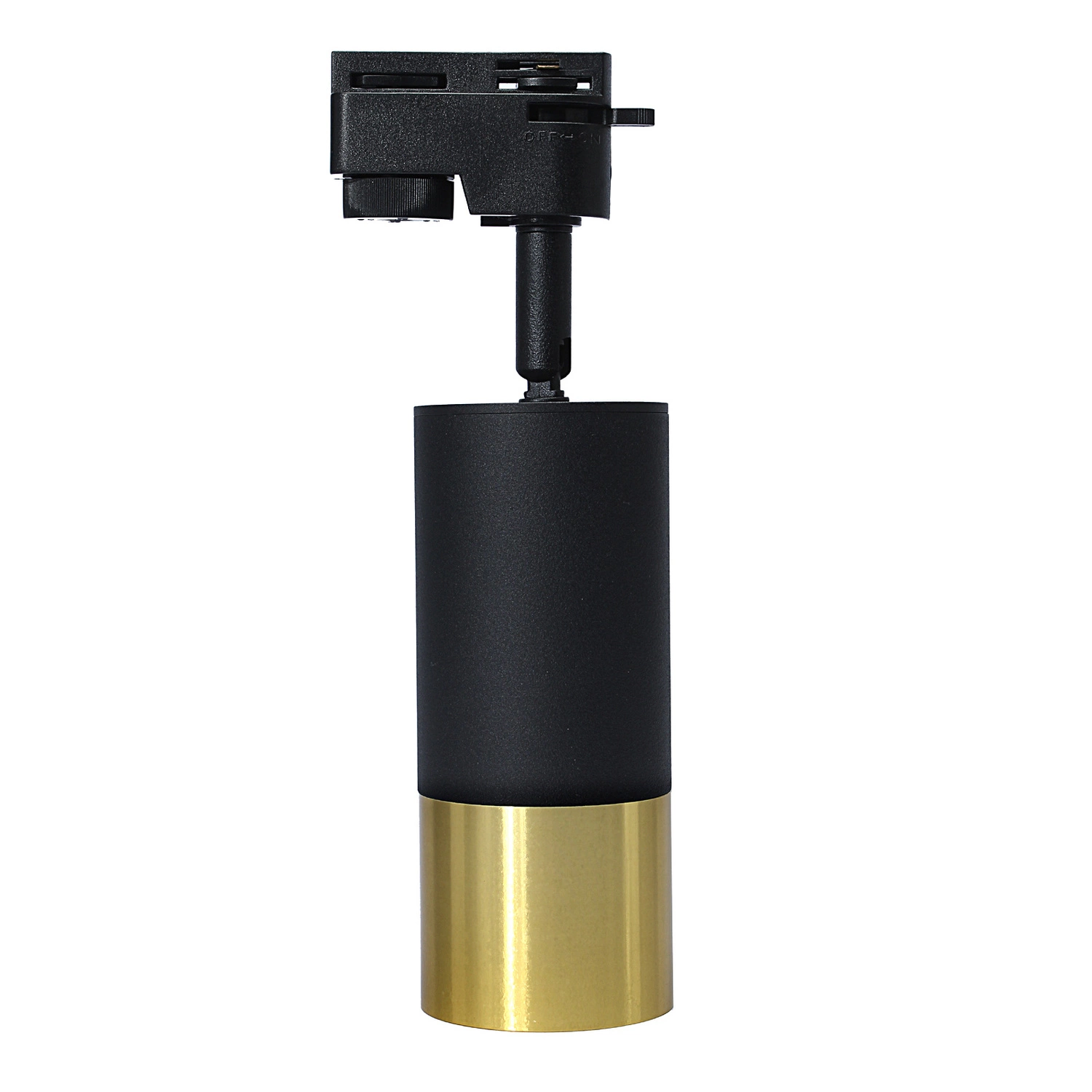 Reflektor szynowy na żarówkę GU10 w kolorze czarno złotym.