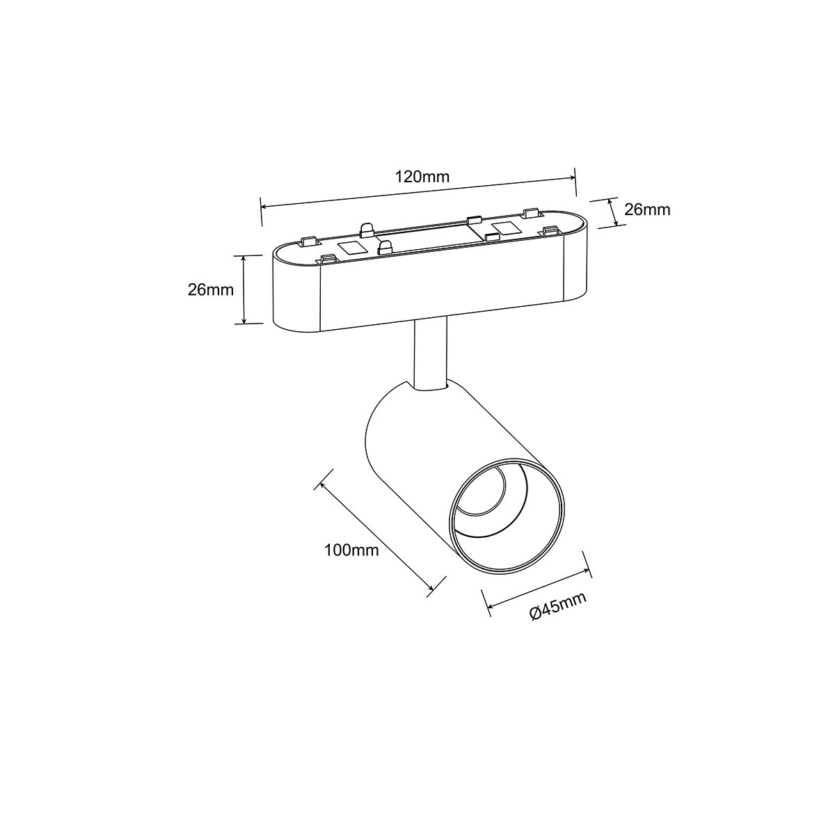 Reflektor Magnetic Slim Veltra w szczegółach Rodzaj lampy: Reflektor do oświetlenia szynowego z kolekcji Magnetic Slim, model Veltra. Wymiary: Długość klosza wynosi 10 cm, średnica klosza wynosi 4,5 cm. Szerokość podsufitki to 12 cm, natomiast jej wysokość i głębokość to 2,6 cm. Materiał i kolorystyka: Lampę jest wykonana z metalu w czarnym kolorze. Źródło światła: Zintegrowane źródło światła LED o neutralnej barwie 4000K.