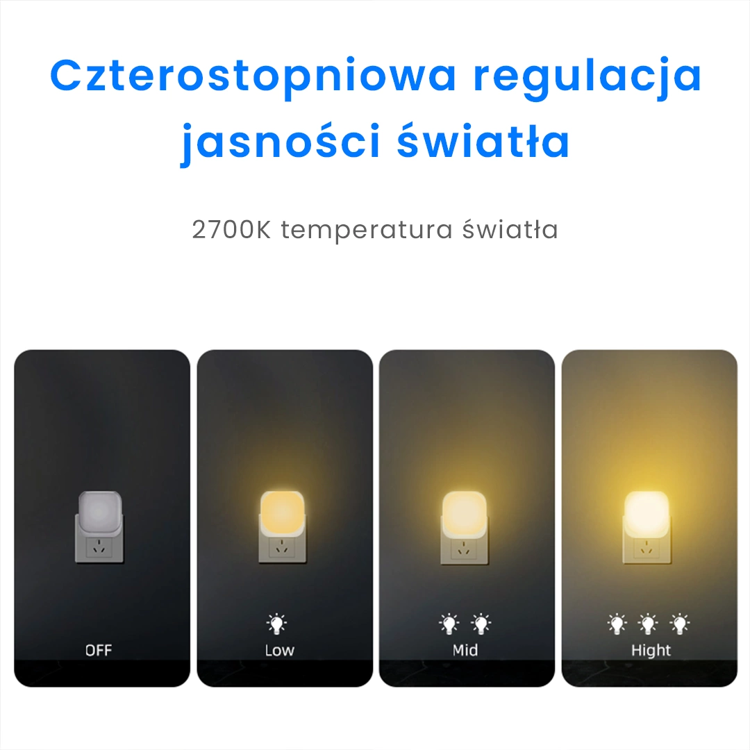 Lampa Wtykowa z Czujnikiem Zmierzchu to praktyczne i energooszczędne rozwiązanie, które zapewnia komfort i bezpieczeństwo w Twoim domu. Dzięki wbudowanemu czujnikowi zmierzchu lampa automatycznie włącza się, gdy zapada zmrok, a wyłącza, gdy robi się jasno – oszczędzając energię i zapewniając wygodę użytkowania. Jej subtelne, ciepłe światło tworzy przytulną atmosferę, idealną do sypialni, dziecięcego pokoju, korytarza czy kuchni. Kompaktowy i elegancki design sprawia, że Lampa Wtykowa dyskretnie wpasowuje się w każde wnętrze, nie zaburzając jego estetyki.