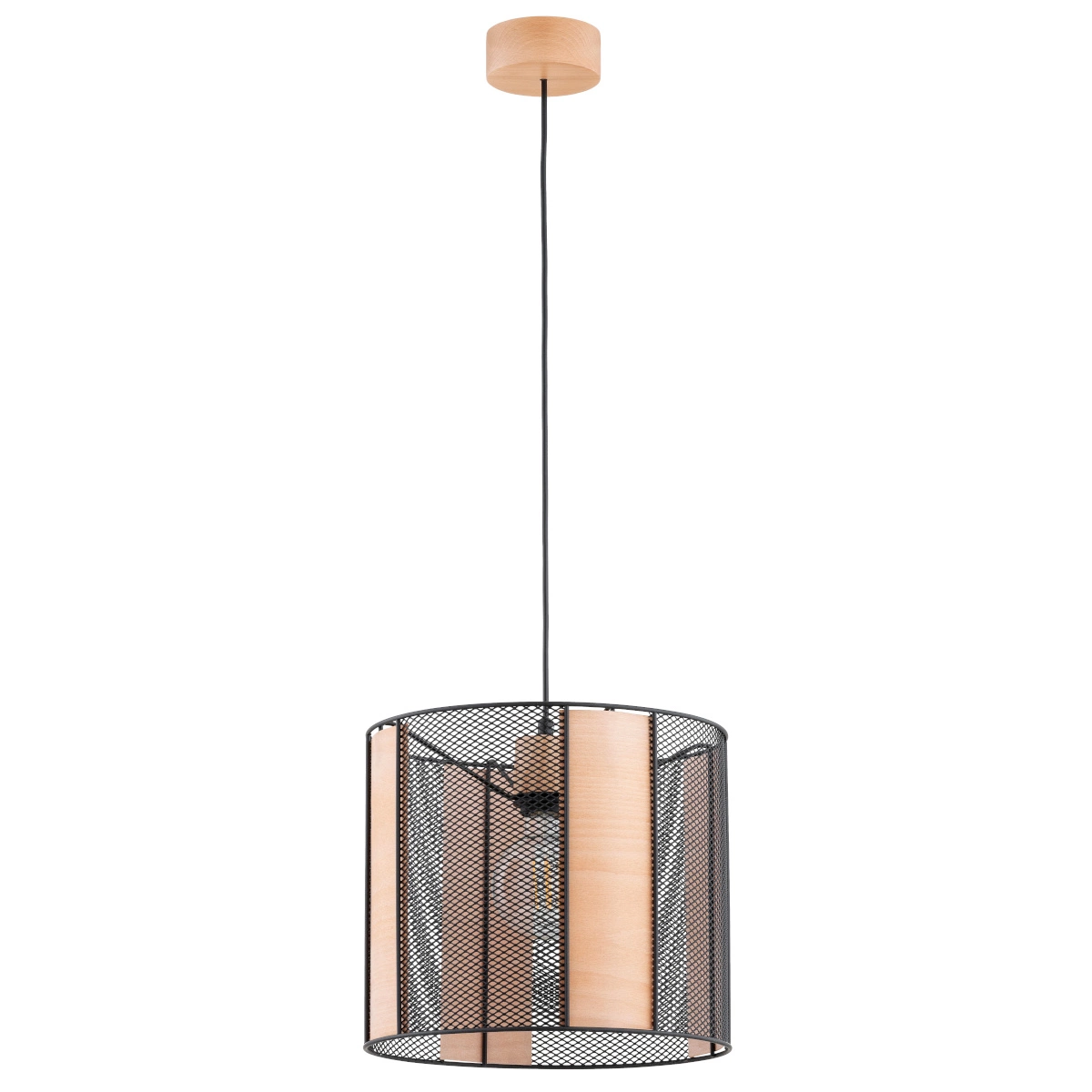 Lampa wisząca ALFA NETIS CZARNA & DREWNIANA 1xE27 32cm | 61381