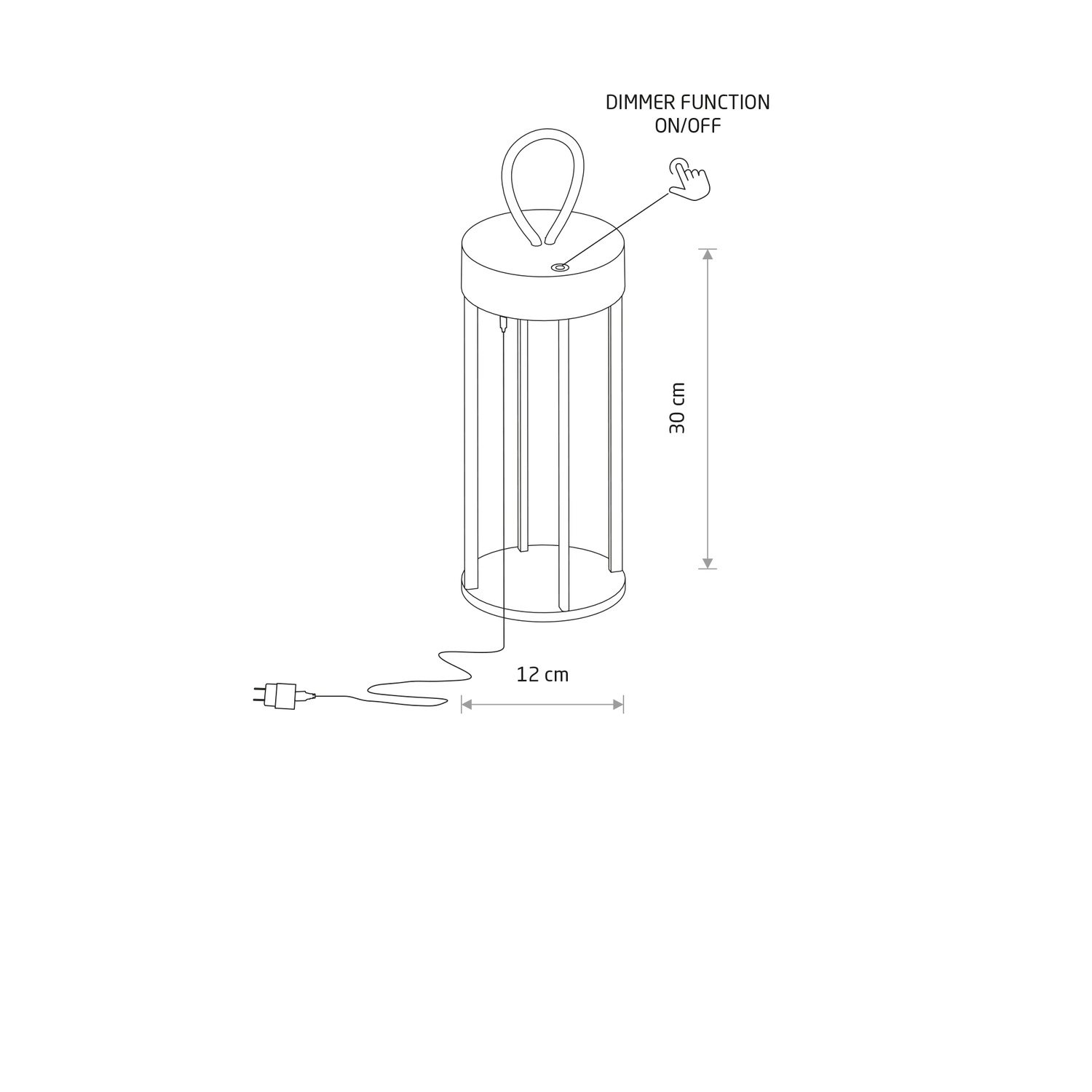 Lampa przenośna NALA LED 4W 2700K 170lm wys.30cm szer.12cm IP54 ściemniacz włącznik | Czarny 11536