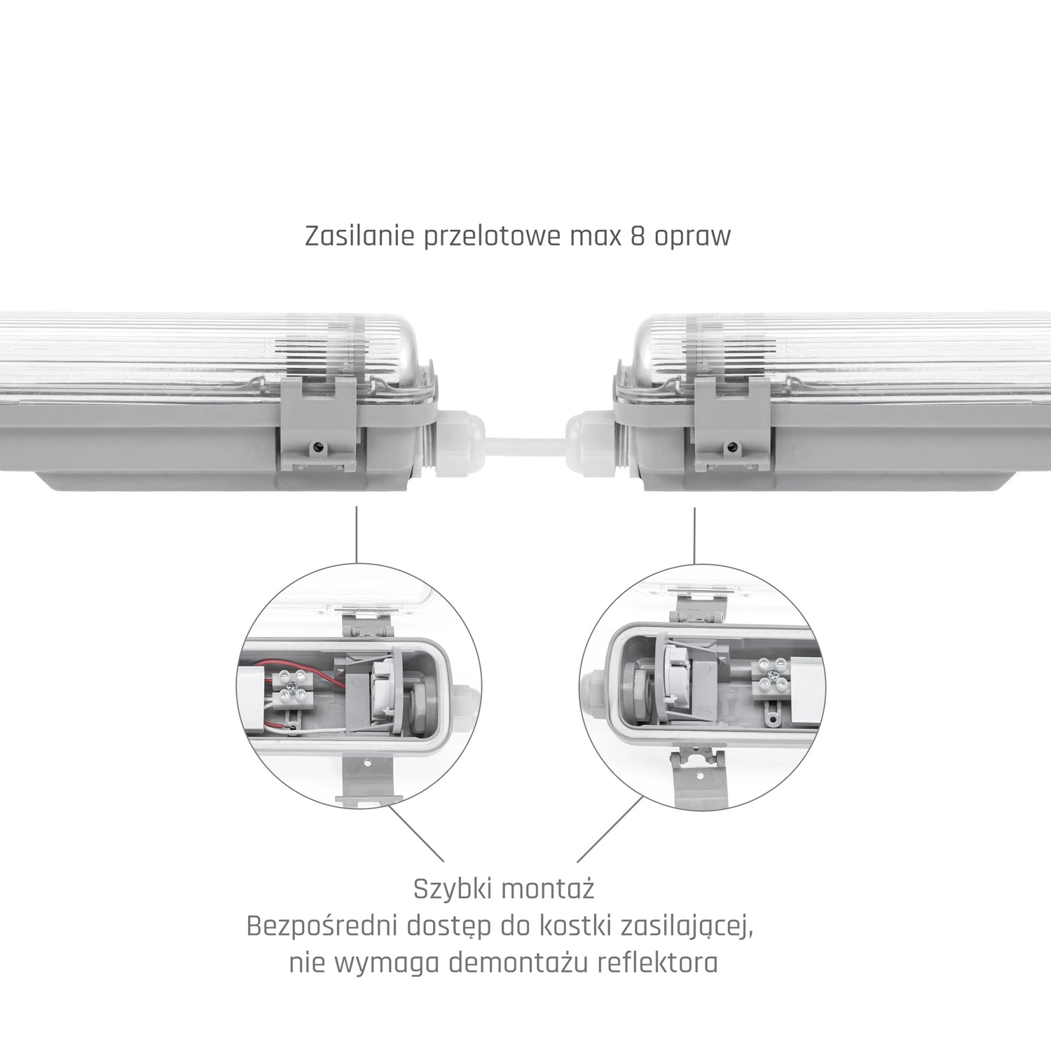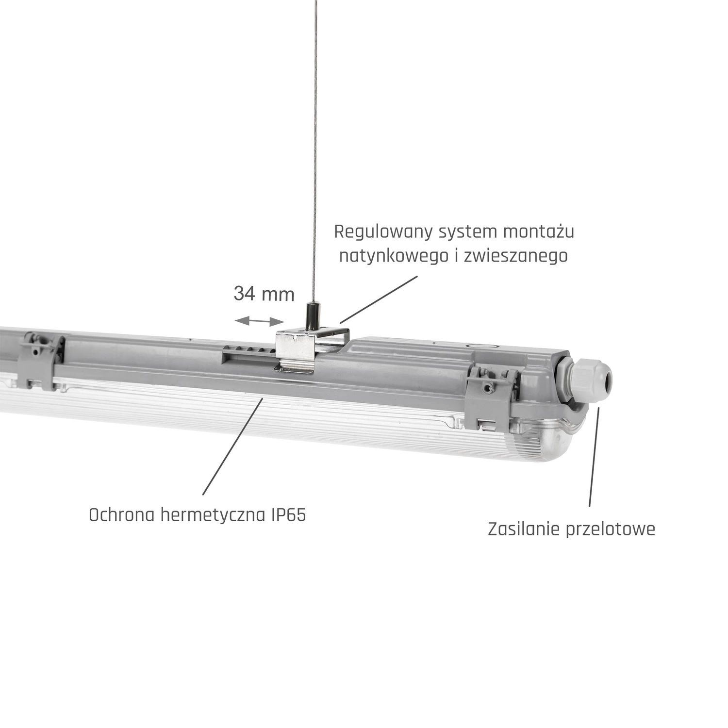 LIMEA LED TUBE SLIM HERMETYK G13 1x60 250V IP65 710x65x63 mm SZARY