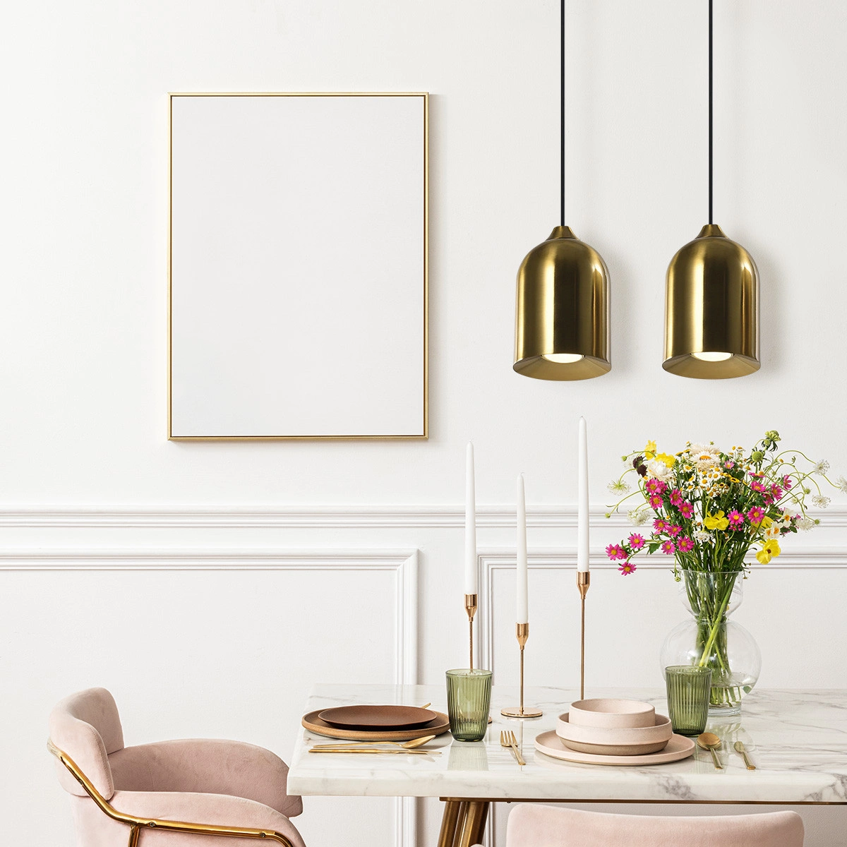 Nowoczesna i elegancka – podwójna lampa wisząca Nilo to idealny wybór do wnętrz urządzonych w minimalistycznym, loftowym lub nowoczesnym stylu. Wykonana z metalu w subtelnym, złotym kolorze, wyróżnia się prostą formą oraz wysoką jakością wykonania. Dzięki szerokiej listwie montażowej lampa doskonale sprawdzi się jako oświetlenie nad stołem w jadalni, blatem kuchennym, a także w nowoczesnych przestrzeniach komercyjnych, takich jak kawiarnie czy restauracje.