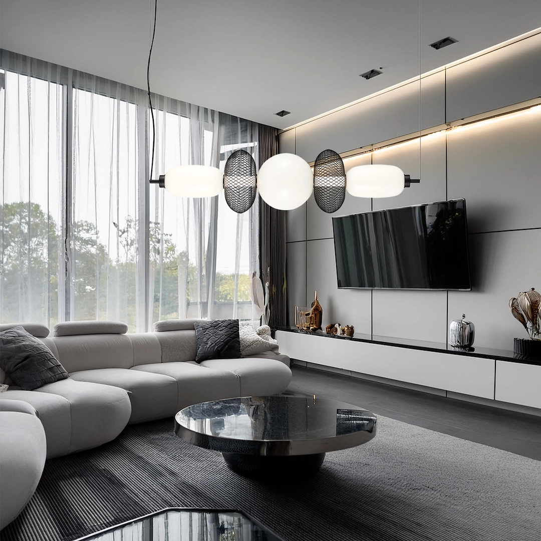 Seria lamp wiszących ARAME łączy subtelność szkła z solidnością metalowej konstrukcji, tworząc wyjątkowe źródło światła do wnętrz mieszkalnych i komercyjnych. Dostępne modele różnią się rozmiarem oraz intensywnością oświetlenia, oferując warianty 15W, 23W i 32W, wszystkie emitujące ciepłe światło o temperaturze 3000K. Czarna oprawa nadaje im charakterystyczny wygląd, a szeroki kąt świecenia 120° zapewnia równomierne rozproszenie światła. Regulowana wysokość pozwala na dopasowanie do różnych przestrzeni, a montaż jest intuicyjny i nie wymaga skomplikowanych narzędzi. Te nowoczesne lampy doskonale komponują się zarówno z nowoczesnymi, jak i klasycznymi wnętrzami, nadając im wyjątkowy nastrój.