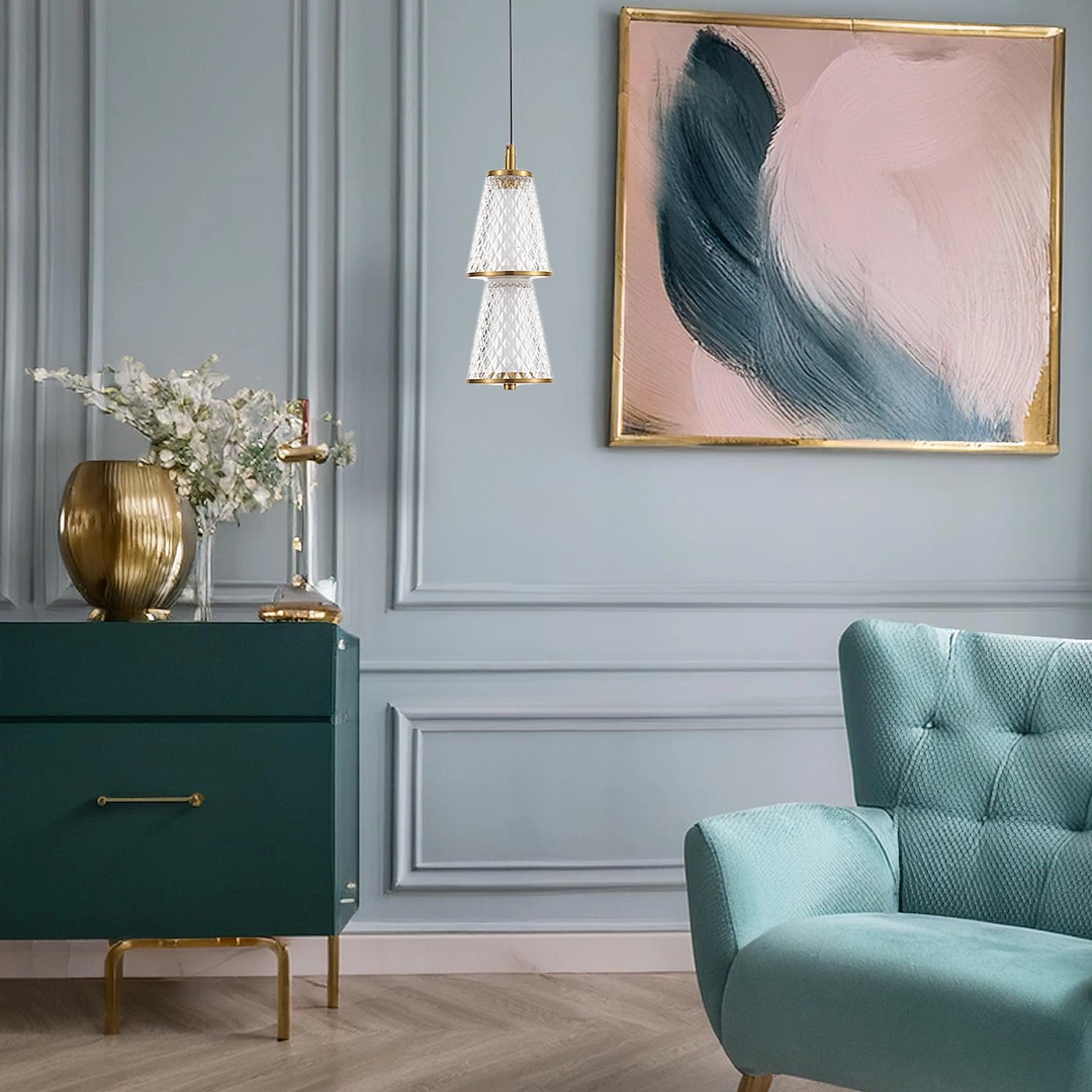 Lampa wisząca SANSA to idealne rozwiązanie dla osób ceniących niebanalne wzornictwo połączone z wysoką funkcjonalnością. Jej unikalny projekt złożony z szeregu symetrycznych, geometrycznych kloszy nadaje wnętrzu niepowtarzalnego charakteru i wyrazistego stylu. Dzięki swojej liniowej konstrukcji SANSA świetnie sprawdzi się jako centralny element oświetlenia w jadalni, salonie czy nad wyspą kuchenną. Rozproszone światło wydobywające się z kloszy tworzy przytulną i elegancką atmosferę, idealną zarówno na co dzień, jak i podczas spotkań z bliskimi. Lampa została wykonana z wysokiej jakości materiałów, co gwarantuje trwałość oraz doskonały wygląd przez lata.