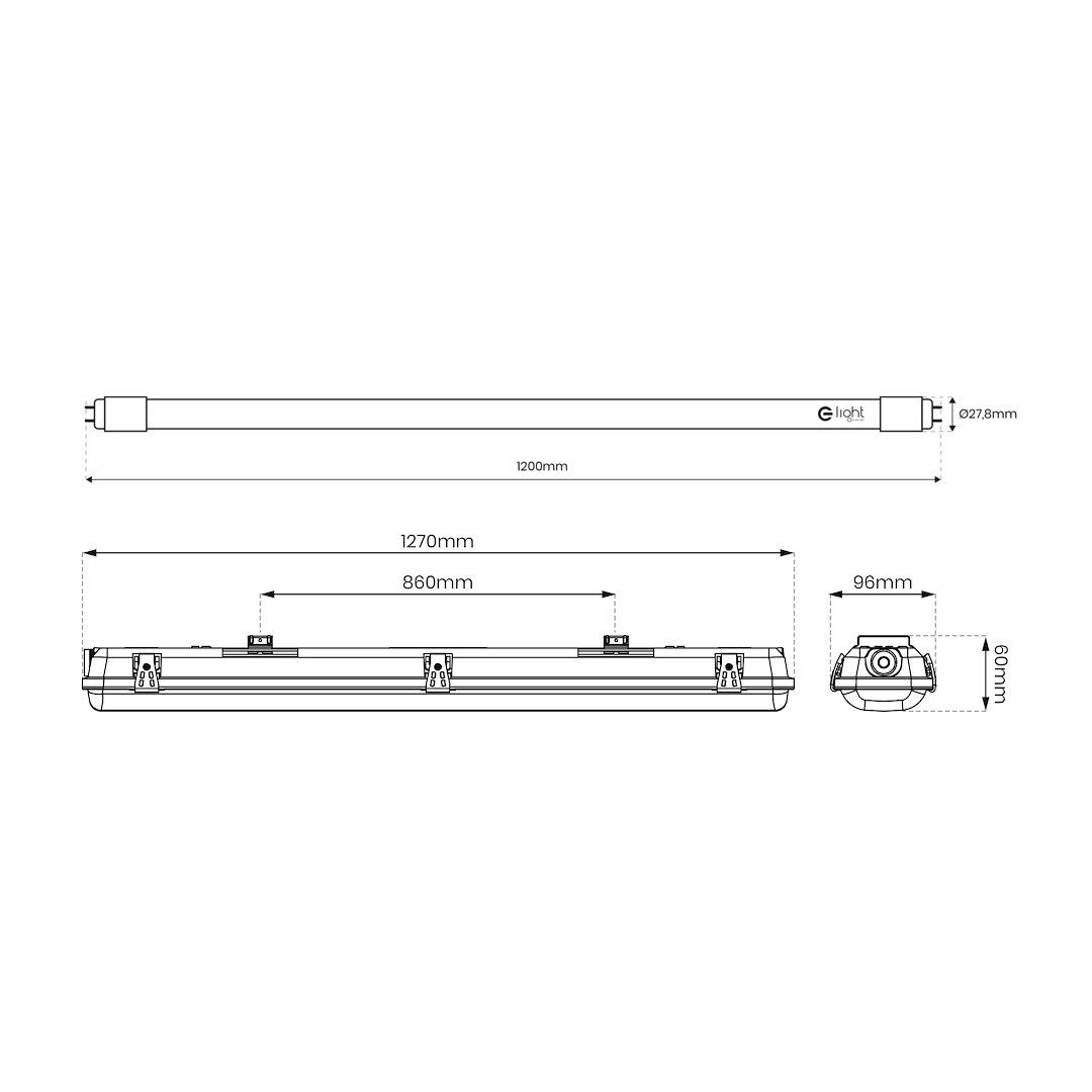 ZESTAW OPRAWA HERMETYCZNA 2x120cm POD ŚWIETLÓWKĘ LED + 2x ŚWIETLÓWKI LED 18W 120CM 3000K