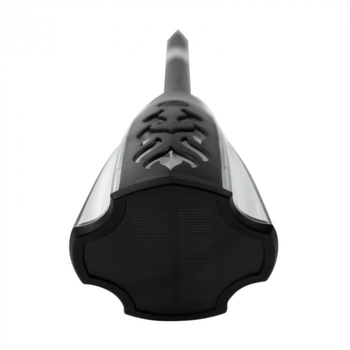 - Wbudowany panel solarny efektywnie ładuje akumulator w ciągu dnia, eliminując potrzebę korzystania z energii elektrycznej.