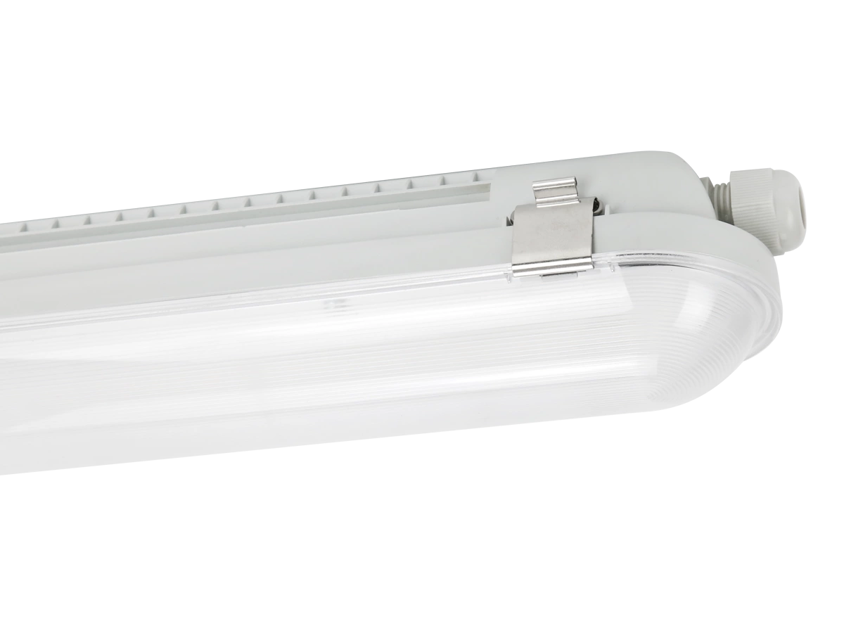 RANGER to seria nowoczesnych, hermetycznych opraw LED zaprojektowanych z myślą o wymagających środowiskach przemysłowych i komercyjnych. Charakteryzują się wysoką skutecznością świetlną na poziomie 150-180 lm/W oraz imponującą żywotnością wynoszącą 100 000 godzin. Dzięki szerokiemu zakresowi mocy od 10 do 80 W oraz dostępności modeli o długości 120 i 150 cm, produkty te umożliwiają precyzyjne dopasowanie do indywidualnych potrzeb użytkownika. W serii RANGER dostępne są wersje o barwie światła 4000K, a także modele z regulacją temperatury barwowej w zakresie 3000K, 4000K i 5000K. Oprawy oferują strumień świetlny od 7200 do 14400 lm oraz kąt rozsyłu światła wynoszący 120°, co gwarantuje równomierne oświetlenie dużych powierzchni. Dzięki wysokiemu stopniowi szczelności IP66 produkty są odporne na działanie pyłu i wody, co czyni je doskonałym wyborem do pracy w trudnych warunkach. Oprawy mogą funkcjonować w szerokim zakresie temperatur od -25°C do +45°C i oferują możliwość linkowania, co ułatwia tworzenie ciągów świetlnych. Wybrane modele wyposażone są w nowoczesne czujniki MC137D B, które wspierają zaawansowane funkcje, takie jak: Trójstopniowe ściemnianie, co umożliwia efektywne zarządzanie energią. Precyzyjna detekcja ruchu na bazie mikrofal o częstotliwości 5,8 GHz, odporna na wpływ warunków takich jak temperatura, wilgotność, czy kurz. Możliwość regulacji zdalnej i za pomocą przełączników DIP, pozwalająca na dostosowanie parametrów do indywidualnych wymagań. Maksymalna wysokość instalacji do 6 m z optymalnym działaniem na 3 m. Dzięki integracji z czujnikami seria RANGER zapewnia jeszcze większą funkcjonalność, łącząc wysoką wydajność świetlną z zaawansowanymi możliwościami automatyzacji i oszczędności energii. Wszystkie produkty z serii objęte są pięcioletnią gwarancją, co stanowi potwierdzenie ich niezawodności i wysokiej jakości. RANGER to uniwersalne rozwiązanie, które doskonale sprawdza się zarówno w magazynach, halach produkcyjnych, jak i w przestrzeniach zewnętrznych. Łączy w sobie wydajność, trwałość oraz estetykę, oferując oświetlenie dopasowane do najbardziej wymagających zastosowań.