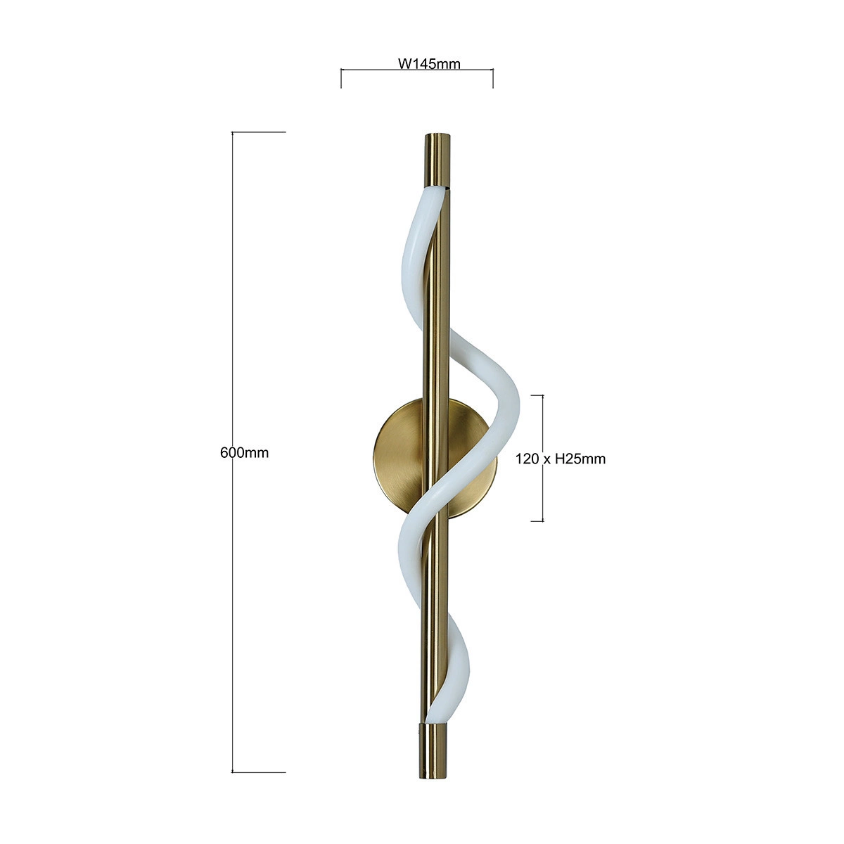 Kinkiet Meleca to nowoczesna oprawa ścienna wykonana z metalu w kolorze złota. Klosz w postaci spiralnie skręconej tuby wykonano z elastycznego akrylu. Kinkiet przeznaczony jest do montażu na ścianie wewnątrz pomieszczeń. Może być stosowany jako oświetlenie dekoracyjne lub uzupełniające. Produkt stanowi część kolekcji Meleca, obejmującej również lampy wiszące, umożliwiając stworzenie spójnej aranżacji oświetleniowej.