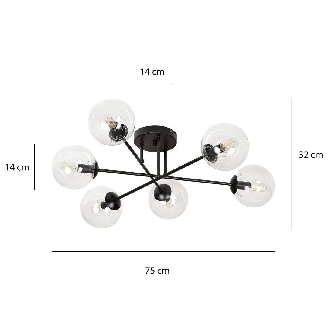 Lampa sufitowa Emibig BRENDI 6B BL TRANSPARENT 831/6B