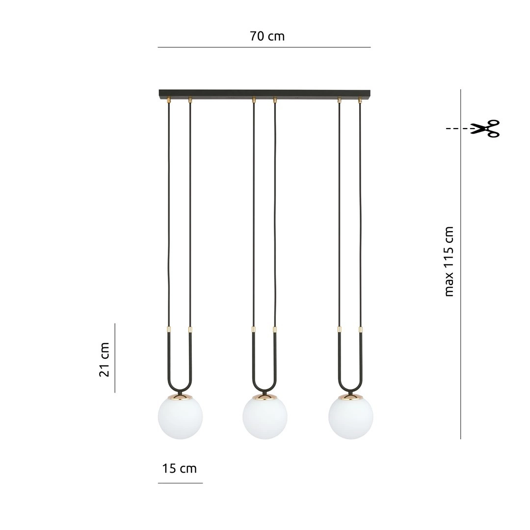 Lampa wisząca Emibig GLAM 3 Czarny/OPAL 1112/3