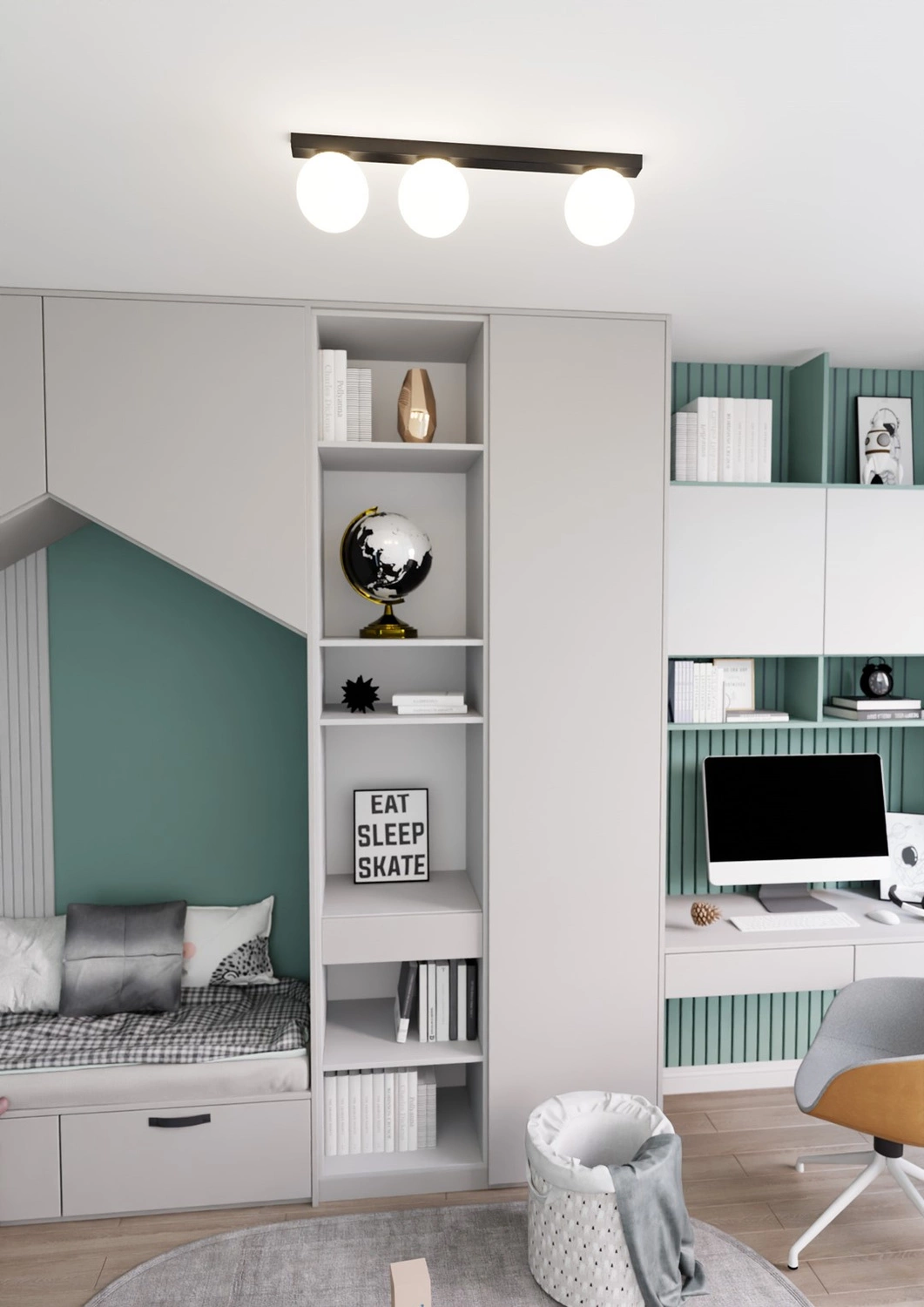 Lampa sufitowa Emibig FIT 3 Czarny/OPAL 1124/3