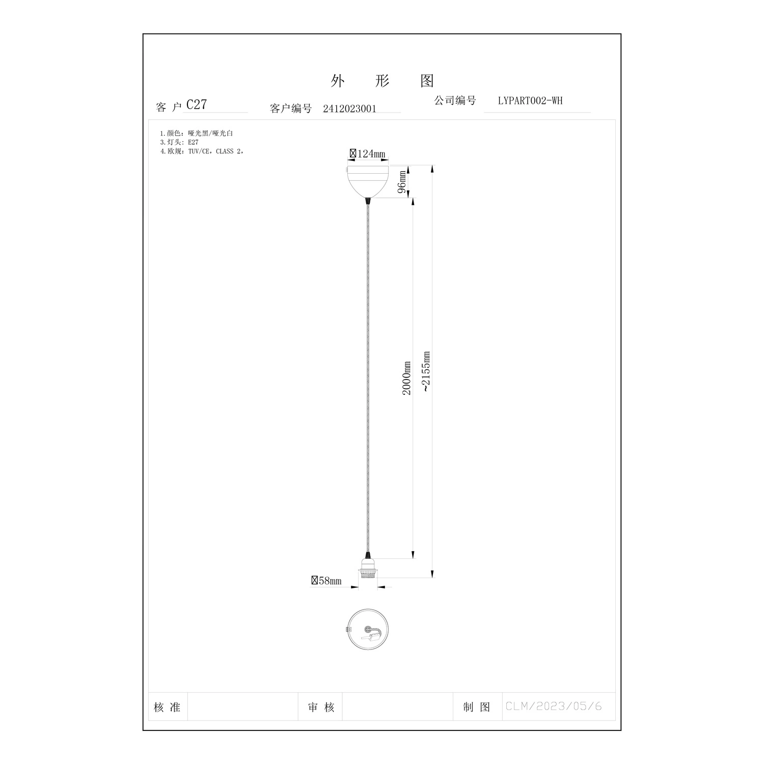 Zestaw do lampy wiszącej DELUX E27 60W Metal | Biały