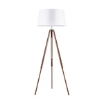 SPOTLIGHT lampa podłogowa tripod. Drewniany trójnog wykonany z drewna bukowego w kolorze orzech natomiast abażur wykonany jest z tkaniny koloru białego. W lampie zastosowano przewód koloru transparetnego, 6021076