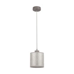 Lampa Wisząca Prata 1xE27 Max.60W Szary Metal/Przezroczysty Kabel PCV/Srebrny Klosz Tkaniny 957280227