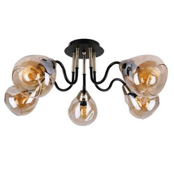 Lampa sufitowa UNICA, 35-00897, czarno-złota z dymionymi kloszami, 5x40W E27