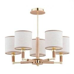 Klasyczny żyrandol drewniany KAMIRA 5xE14 wys. 49cm | drewno złoty