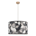 Szara lampa wisząca 1xE27 maks. 60W barwiona sosna szara/czarny kabel z tkaniny/szary klosz z tkaniny 160241157